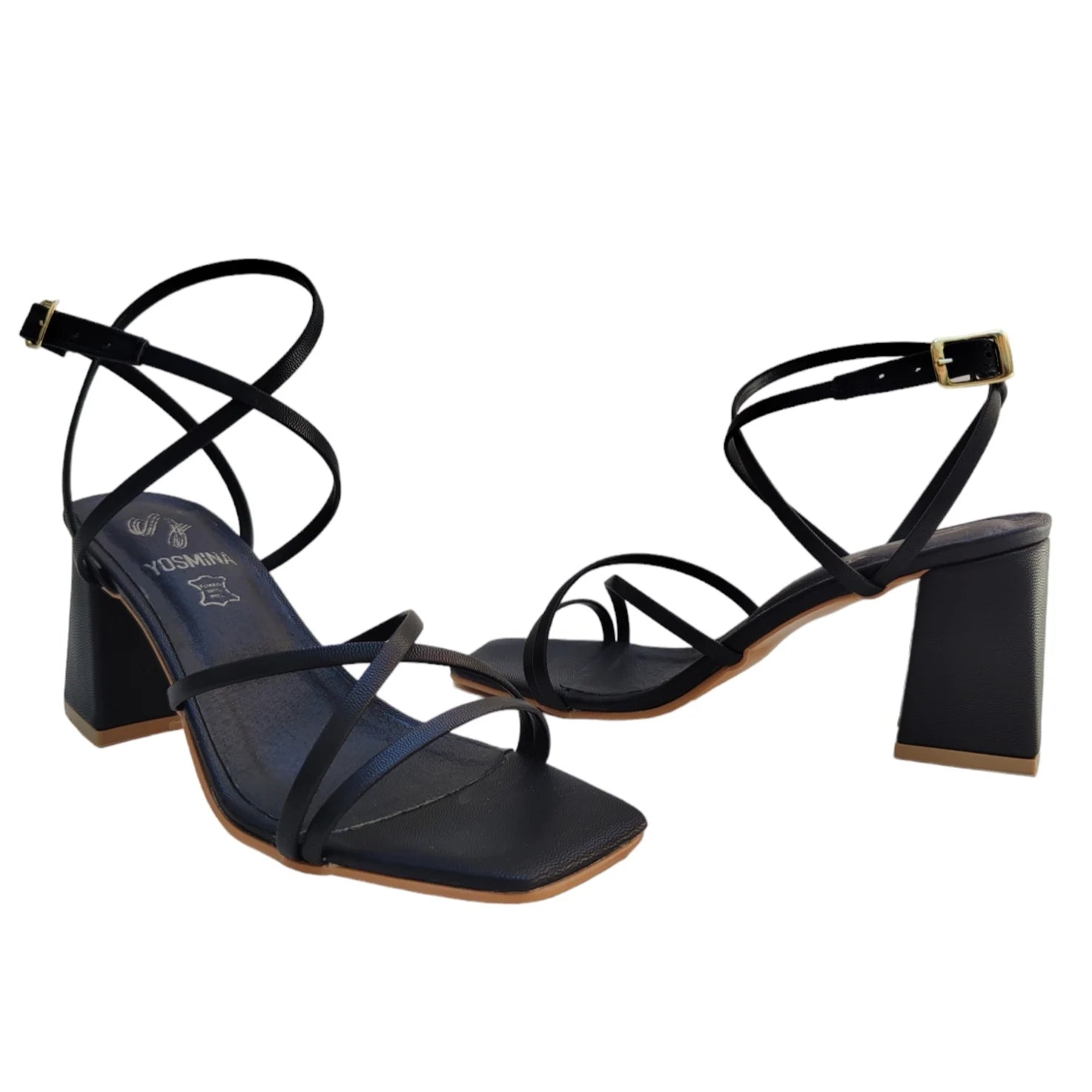 Sandalias elegantes con tacón bloque - Calzado versátil de tiras finas para mujer