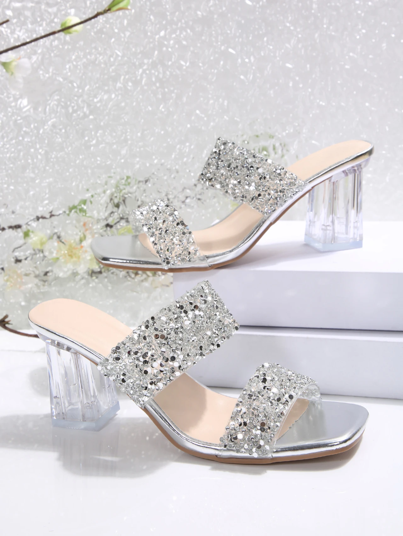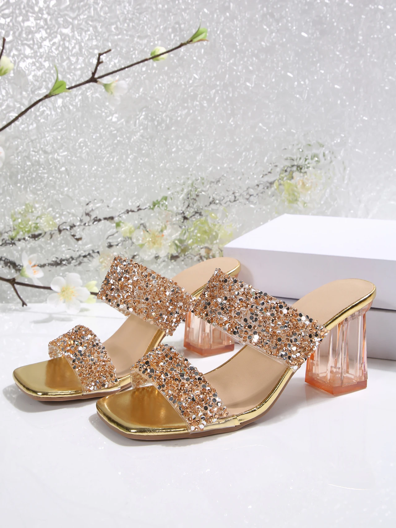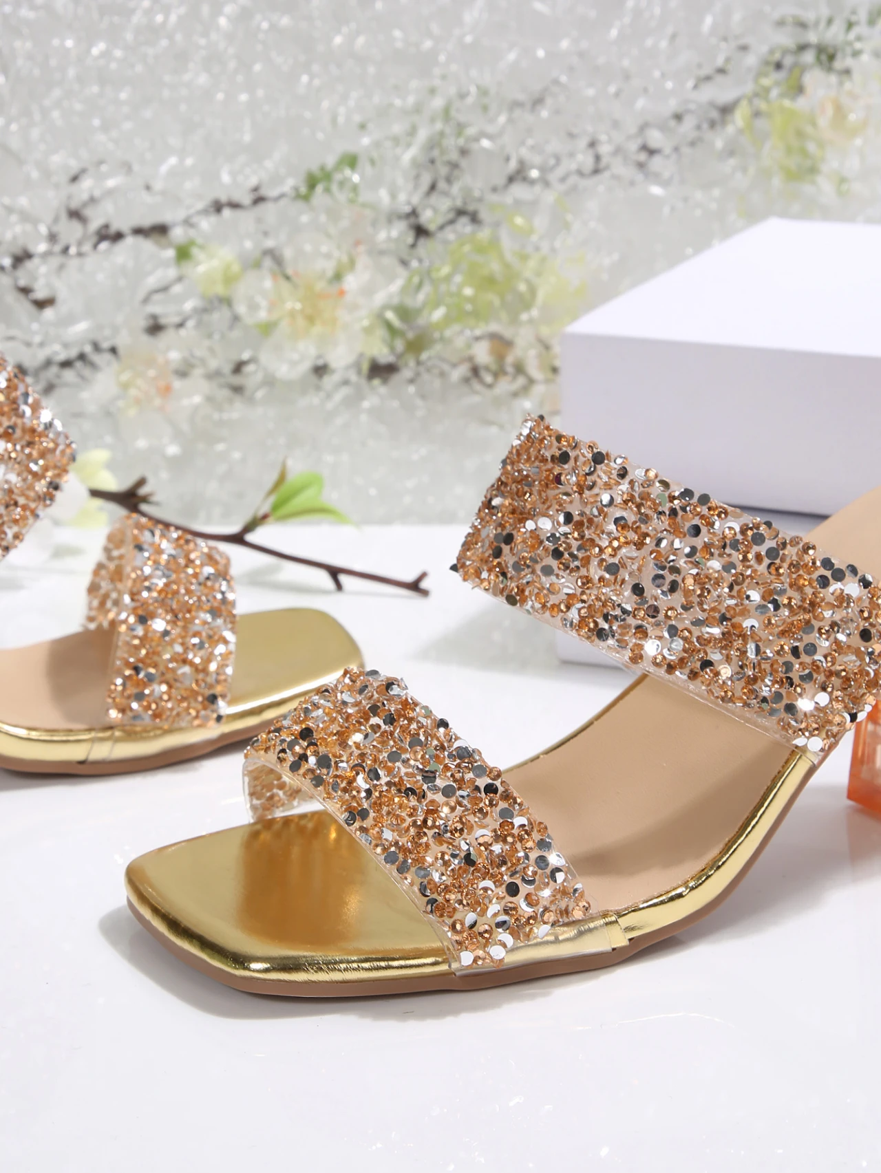 Sandalias de cristal con diamantes – tacón transparente elegante para mujer