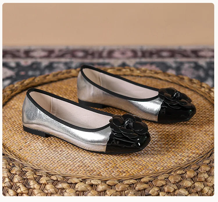 Zapatos planos de mujer con camelia y punta cuadrada – Estilo elegante y cómodo