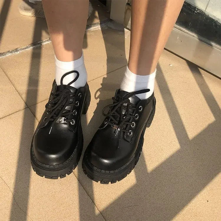 Zapatos planos de mujer tipo Mary Jane | Moda retro con plataforma chunky elegante.